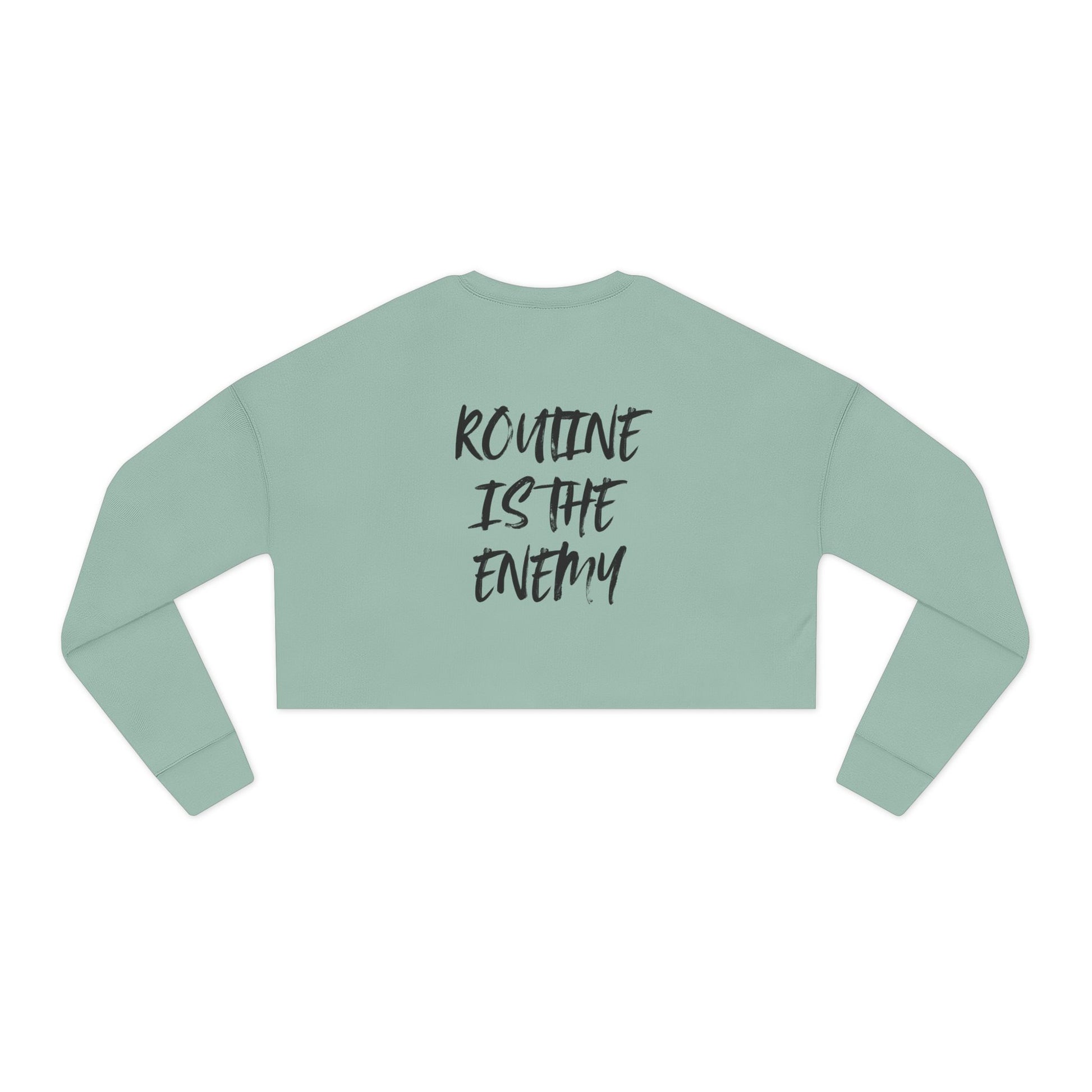 “Routine Is The Enemy” Cropped Sweatshirt – Women's Fitness Top